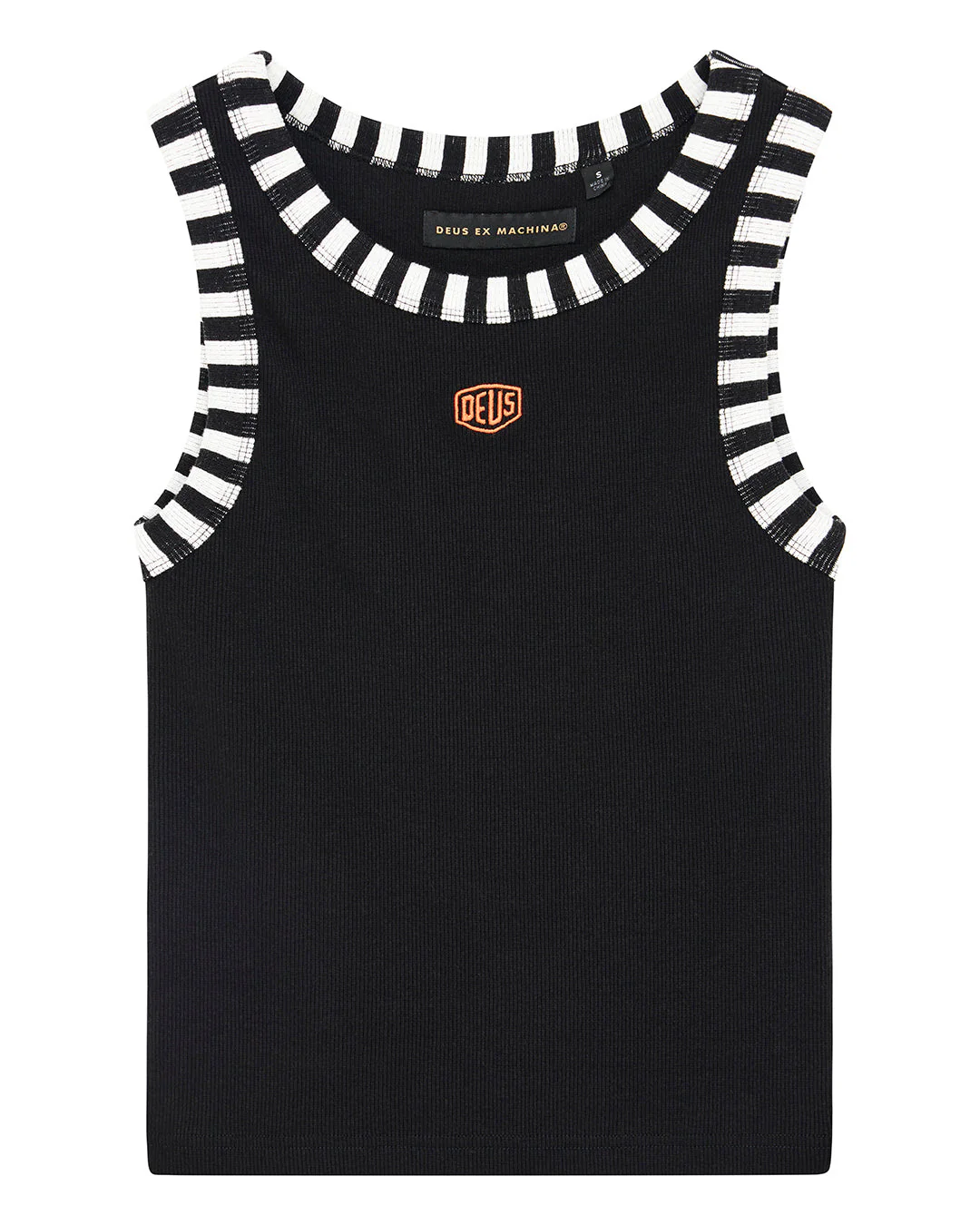 - Contrast stripe neck and arm hole rib